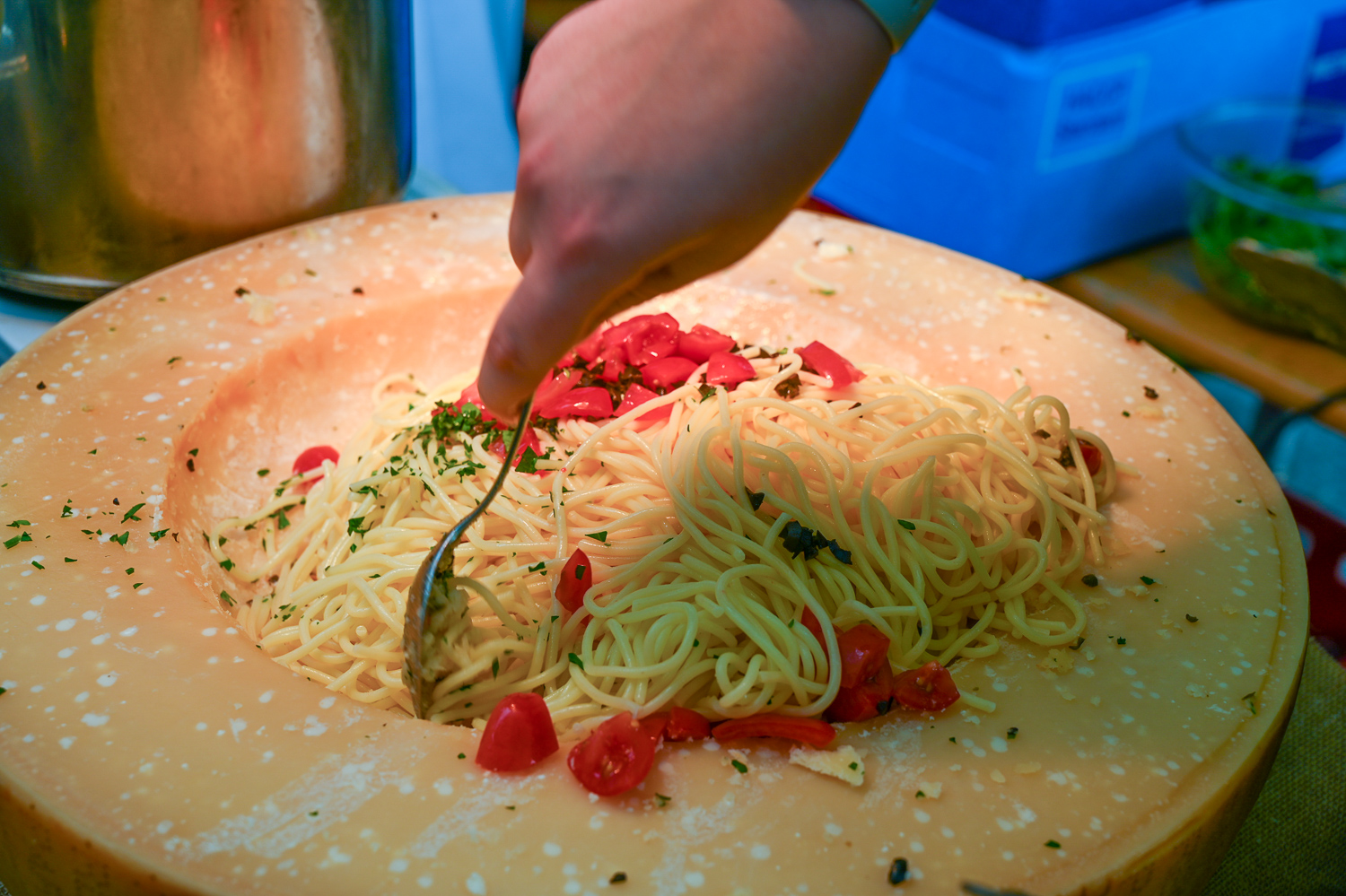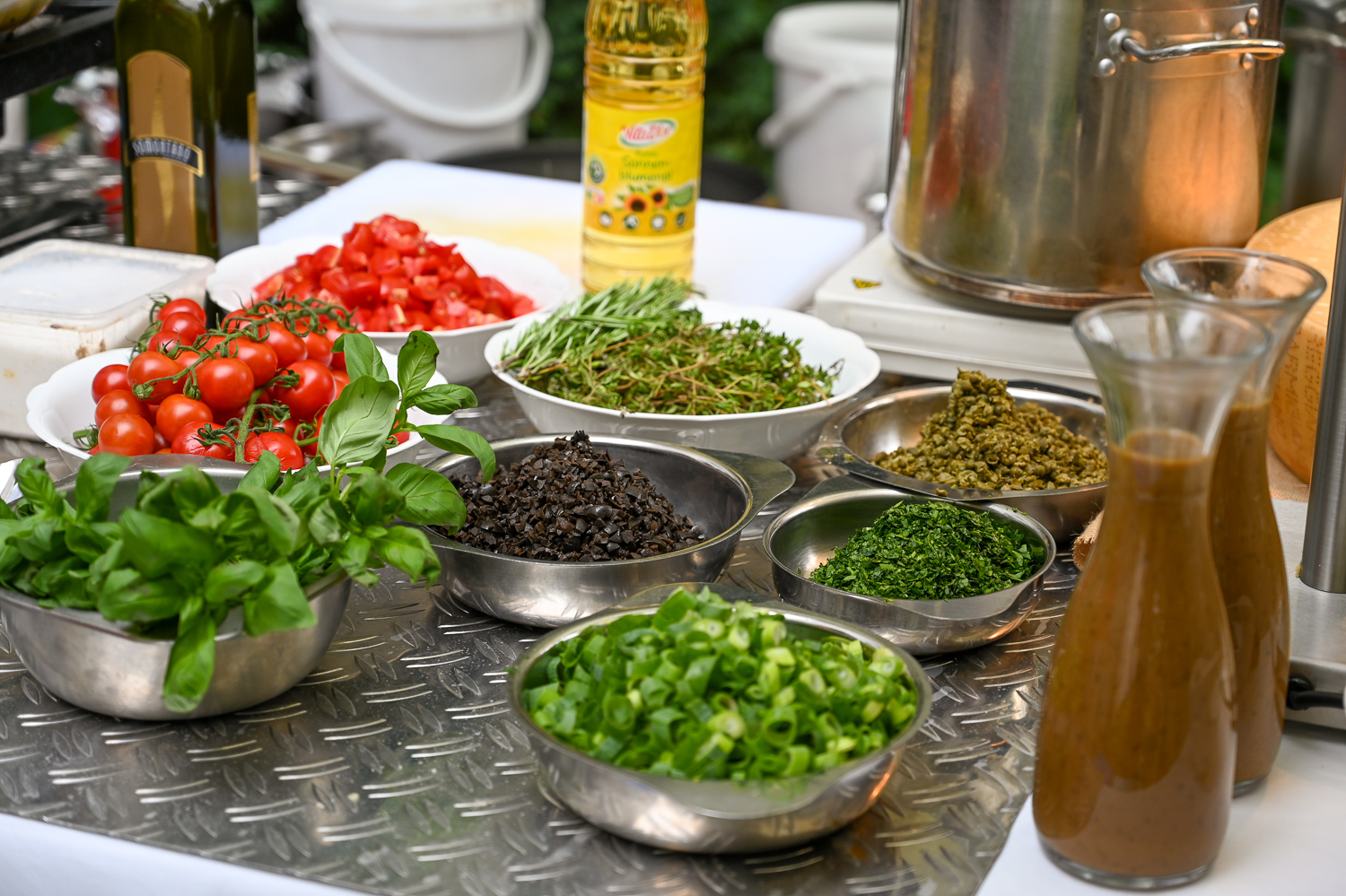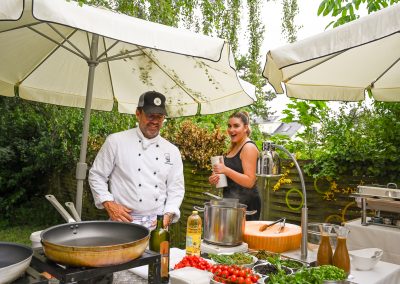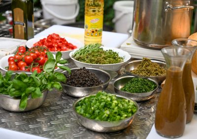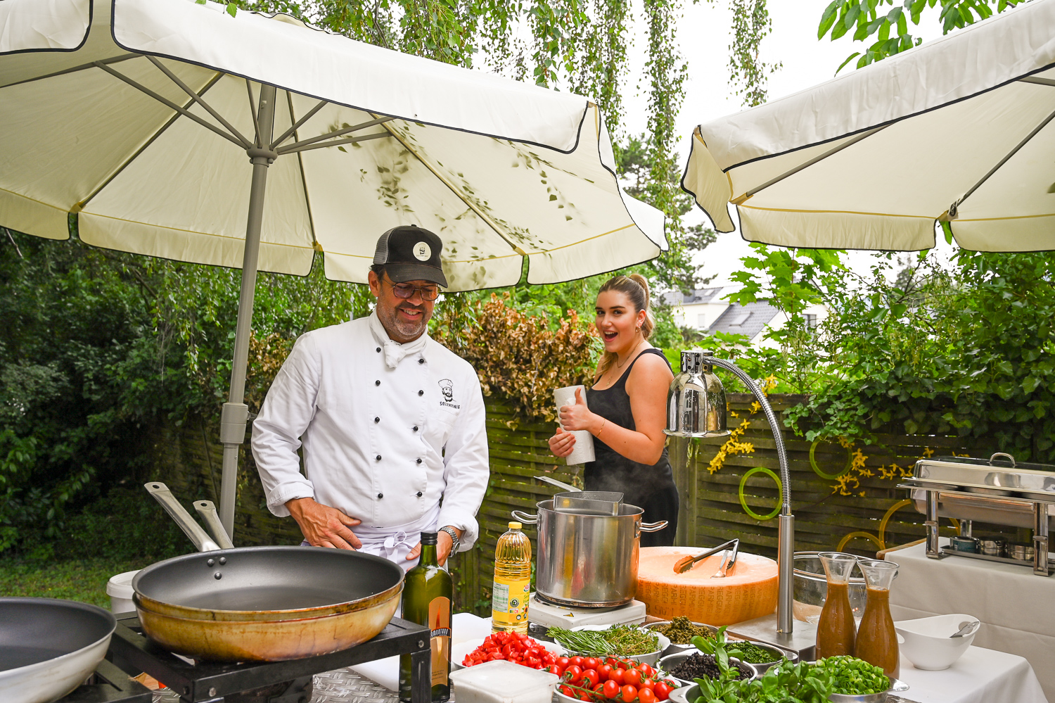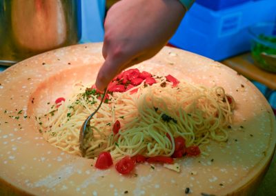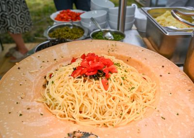 Serviert wurden Spaghetti aus dem Parmesanlaib, Trüffel, Hühner- und Fleischspieße, Tapasteller, Salat und feine Weine. Es war für jeden etwas dabei, auch für Liebhaber der veganen und vegetarischen Küche.
